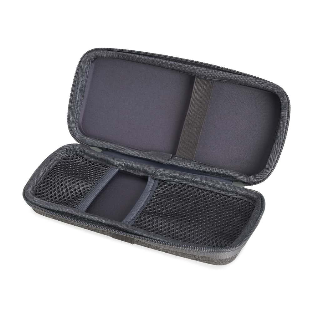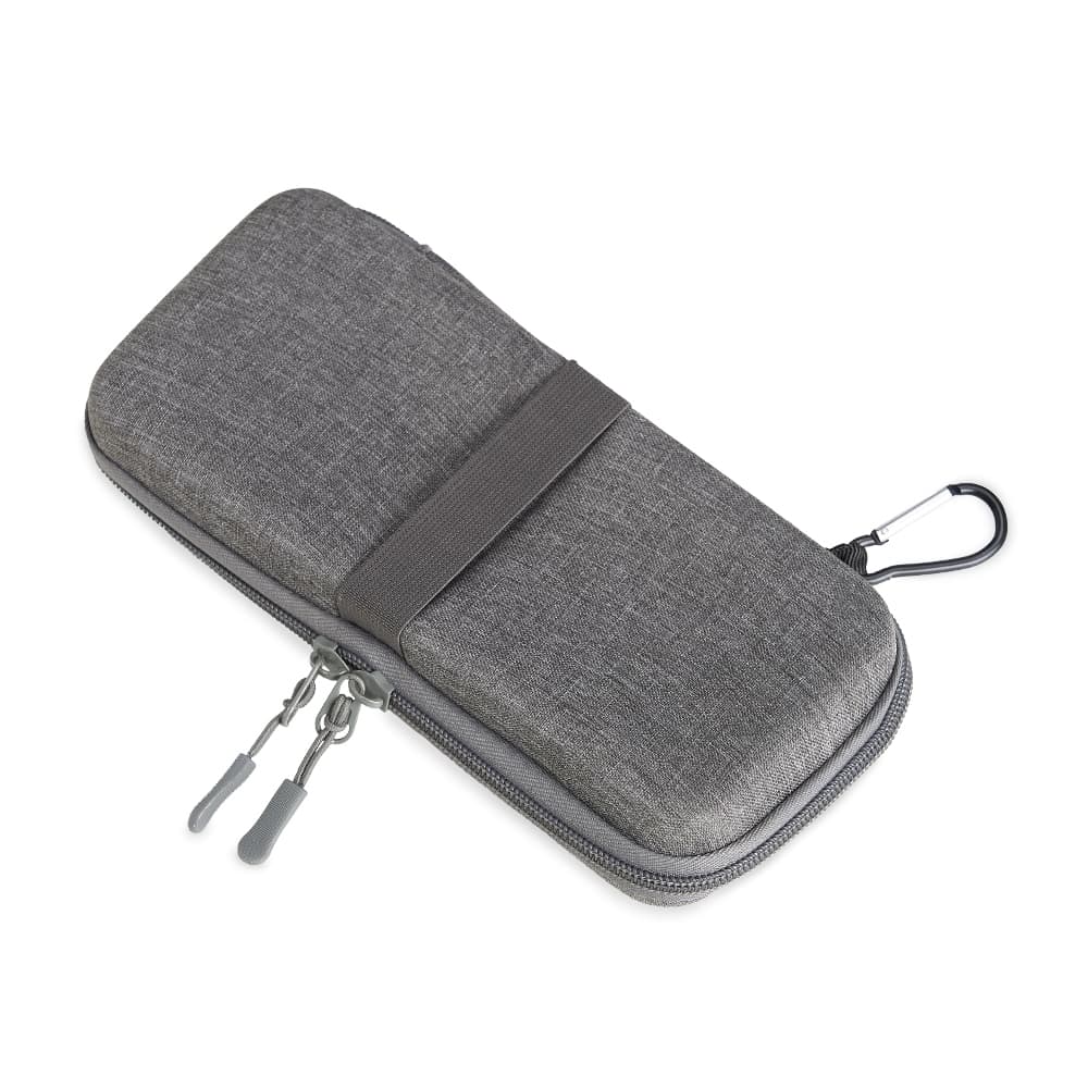 Estojo de proteção para eletrônicos, feito em nylon resistente à água. Contém bolsos de malha internamente e elásticos para fixação na área interna e externa. Acompanha mosquetão.