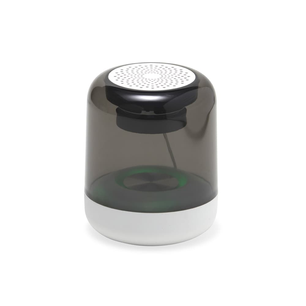 Caixa de som multimídia com luzes led. Operante nos modos bluetooth, rádio FM e cartão TF (MicroSD). Acompanha cabo USB.