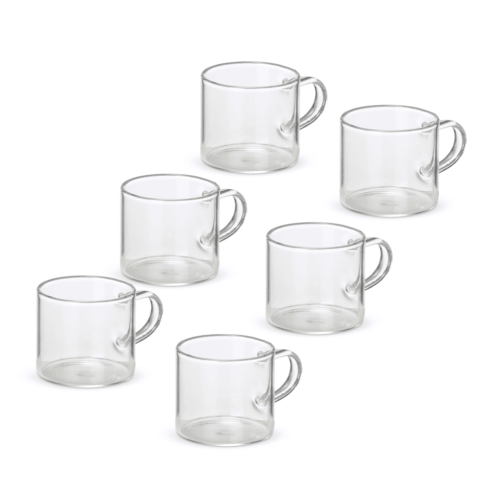 Um kit com seis xícaras em estilo clássico para servir uma bebida quente de um jeito especial. Com capacidade máxima de 100ml, cada uma delas é feita em vidro borossilicato, matéria-prima conhecida por sua durabilidade e resistência, o que as transformam em opções excelentes para tomar aquela dose de café ou chá a qualquer hora do dia.