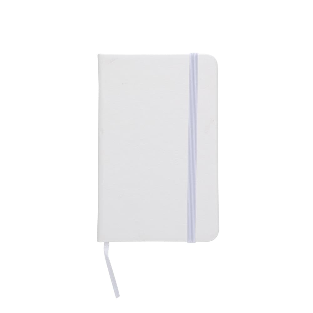 Caderneta de couro sintético com elástico para lacre e marcador de página em cetim, contém 80 folhas pautadas.