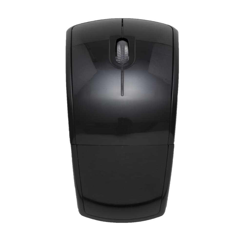 Mouse óptico de tecnologia wireless e retrátil. Mouse anatômico de material plástico resistente, possui rolamento plástico translúcido, laterais texturizadas, parte traseira dobrável, luz inferior óptica vermelha, receptor Nano USB 2.4 GHZ. Funcionamento através de 2 pilhas AAA(não acompanha).