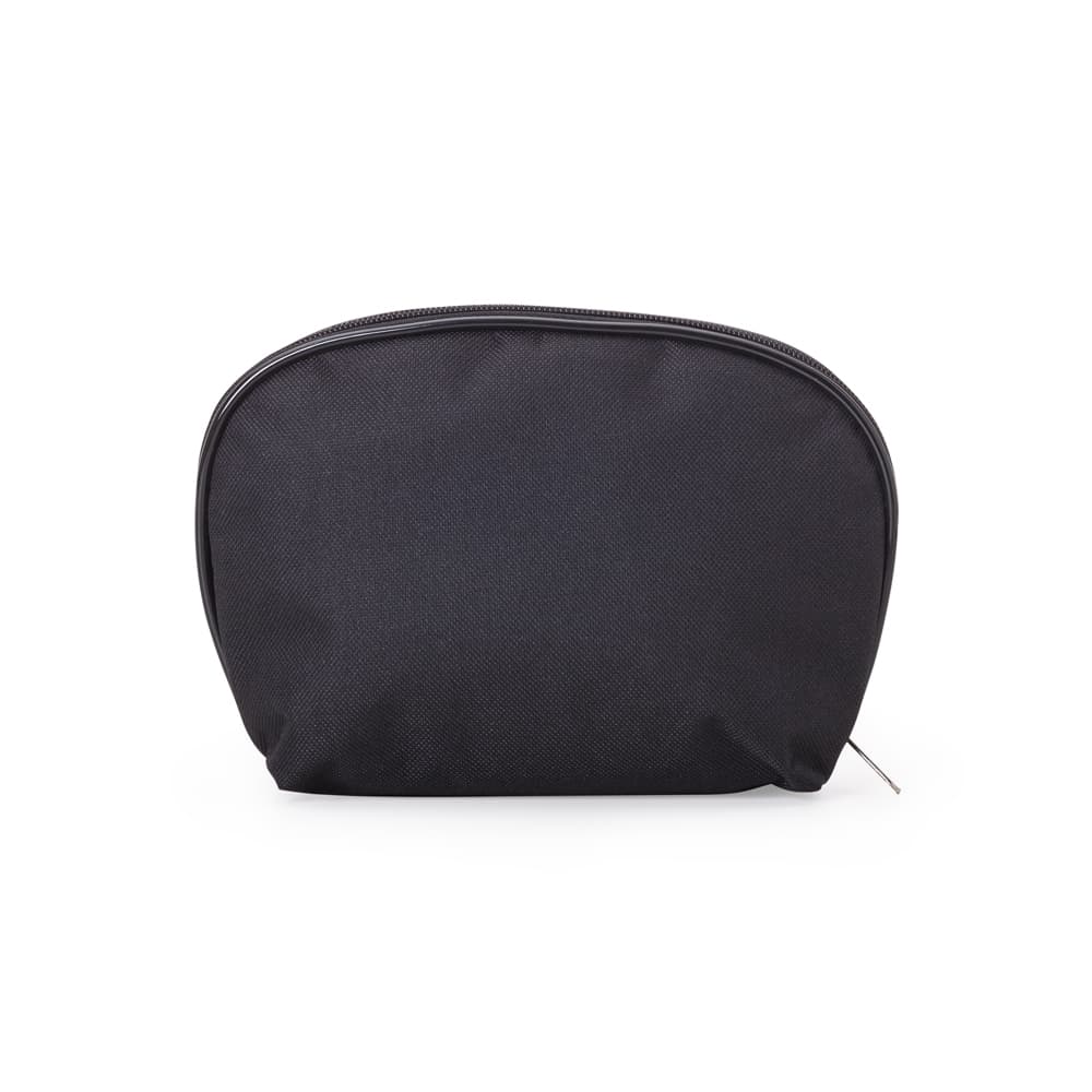 Necessaire de nylon inteira colorida com zíper e parte interna emborrachada.