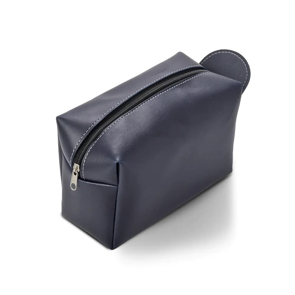 Descrição: Necessaire de couro sintético com pegador lateral.