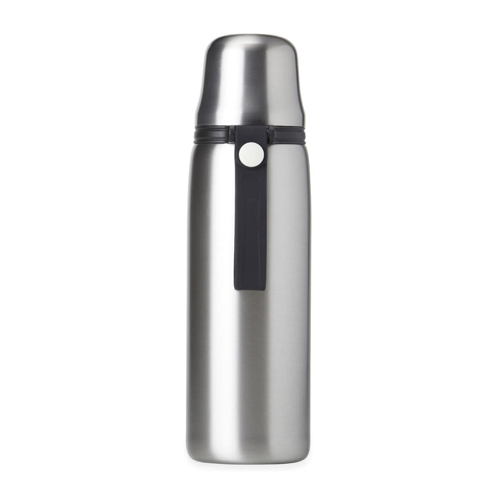 Garrafa térmica feita em inox 304 com parede dupla, capacidade de 850ml. Com alça emborrachada para transporte, a garrafa contém filtro infusor, tampa com botão de acionamento e tampa externa utilizável como copo.