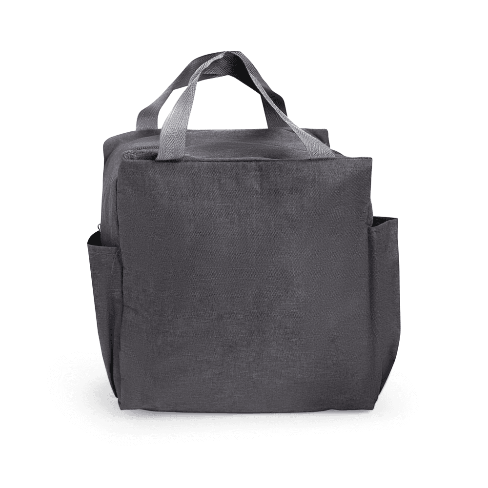 Bolsa térmica confeccionada em Oxford resistente à água, fechamento em zíper e capacidade de até 12 litros. Possui revestimento térmico em folha de alumínio, além de dois bolsos laterais e um par de alças em nylon para transporte.