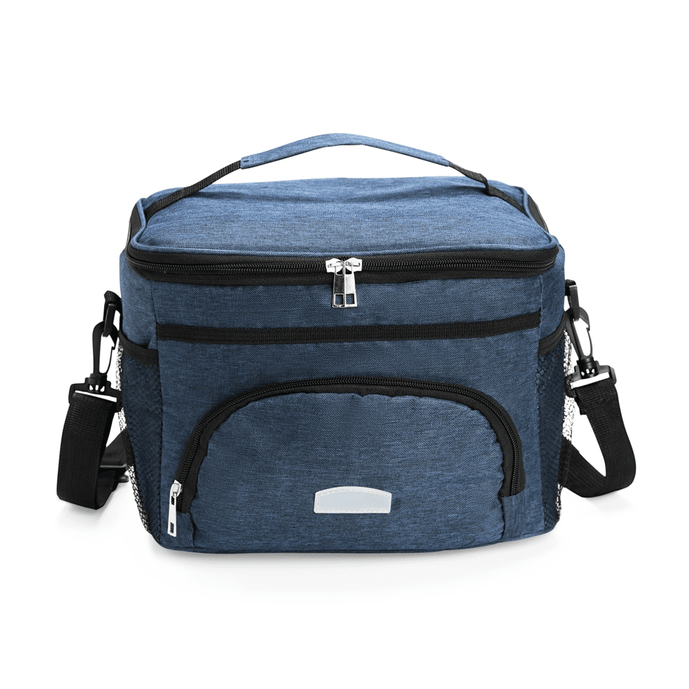 Esta bolsa térmica feita em poliéster resistente à água e revestimento interno em PEVA é uma opção leve e ágil para manter alimentos e líquidos conservados por mais tempo. Com capacidade máxima de 10 litros e fechamento em zíper, ela possui dois bolsos laterais em tela de nylon e um bolso frontal, além de uma alça fixa e outra removível.