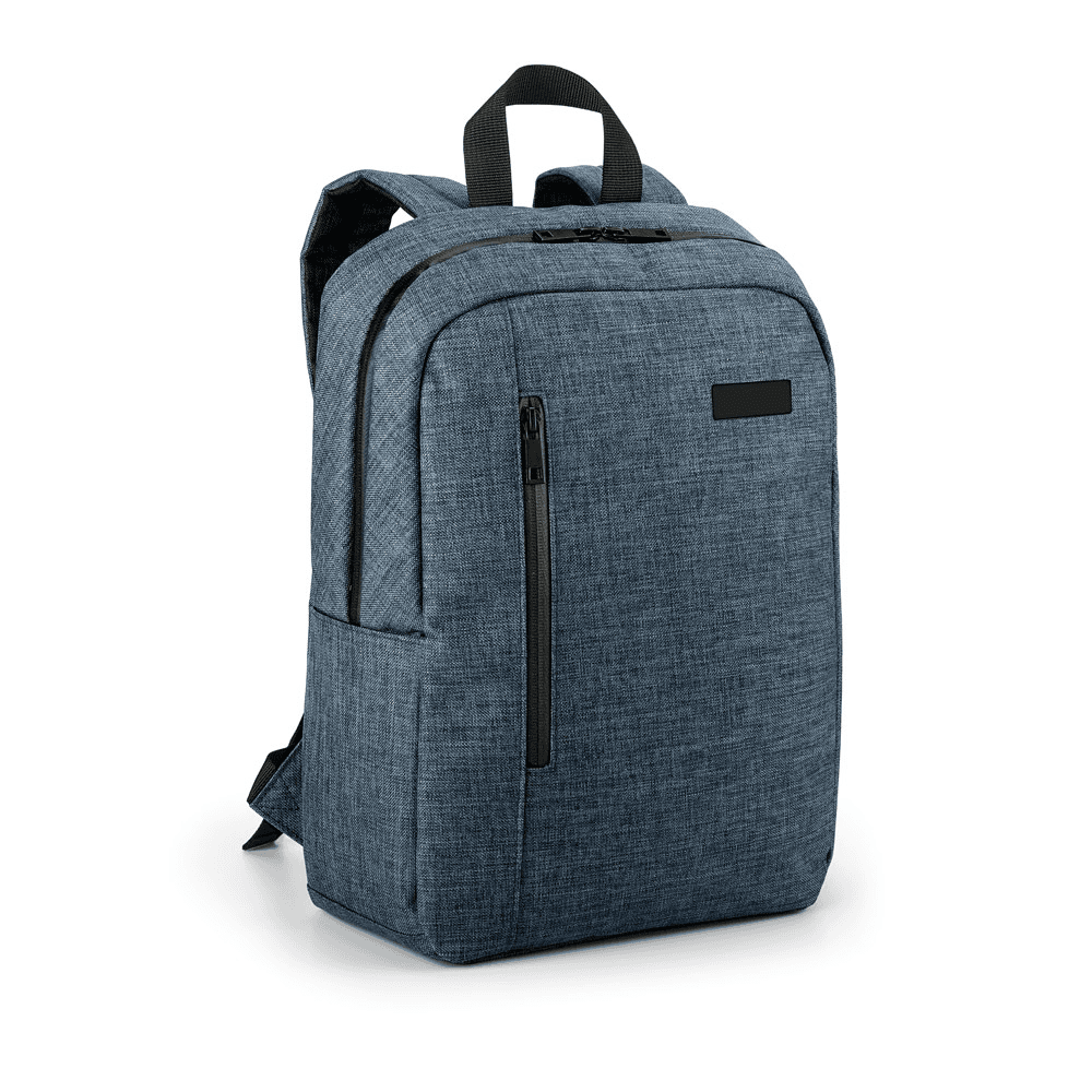 Mochila para notebook em 600D de alta densidade. Compartimento principal forrado, com 2 divisórias almofadadas para computador até 14'' e tablet até 9.7''. A mochila tem 1 bolso frontal e 1 bolso lateral. Parte posterior e alças almofadadas. Placa metálica removível com imã para fácil gravação. Capacidade até 12 L. 310 x 400 x 110 mm | Placa: 50 x 20 mm