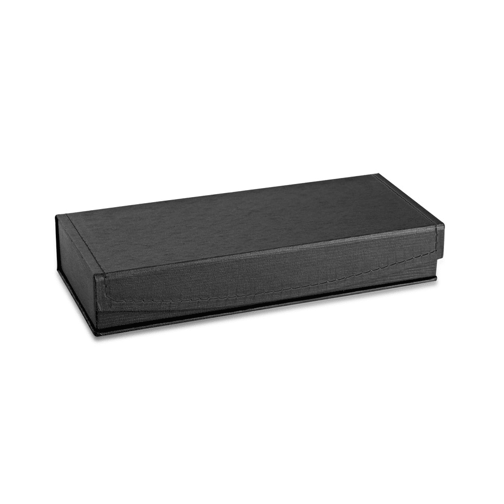 Estojo em cartão para 1 esferográfica com interior almofadado em veludo. 170 x 50 x 28 mm