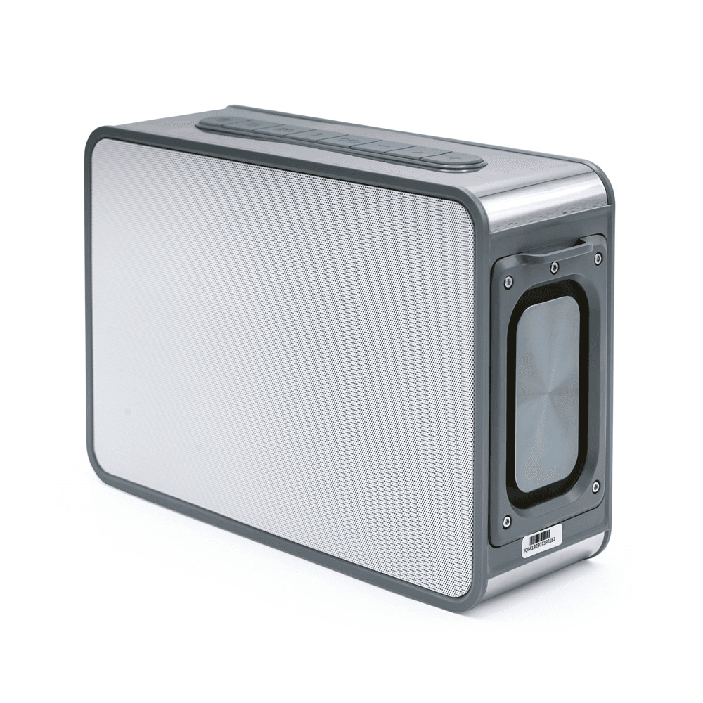 Caixa de som em ABS 100% reciclado com 80W de potência. A capacidade da bateria é de 5.200 mAh, o que permite uma autonomia aproximada de 7h. Tem equalizador com 3 modos, transmissão BT 5.3, entrada e saída AUX e permite ligar microfone externo ou guitarra diretamente. Possibilidade de emparelhar duas caixas de som Jouncer para efeito stereo. Incluso carregador e uma alça para transporte da caixa de som ao ombro. Fornecido em caixa presente de papel kraft reciclado. A grelha é fornecida solta para pedidos não personalizados. 293 x 198 x 105 mm | Caixa: 330 x 309 x 147 mm