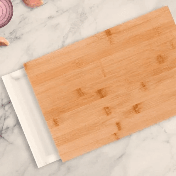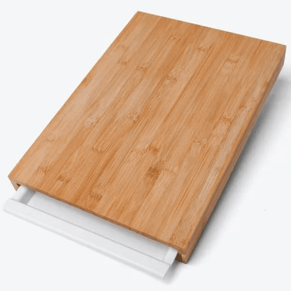Conjunto para cozinha em Bambu/Polipropileno. Acompanha tábua em bambu com bandeja em Polipropileno.