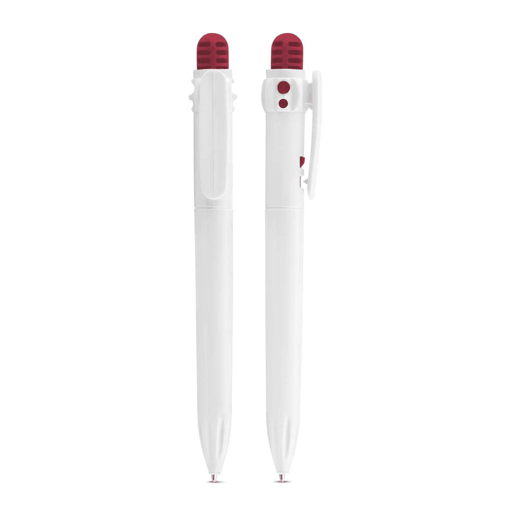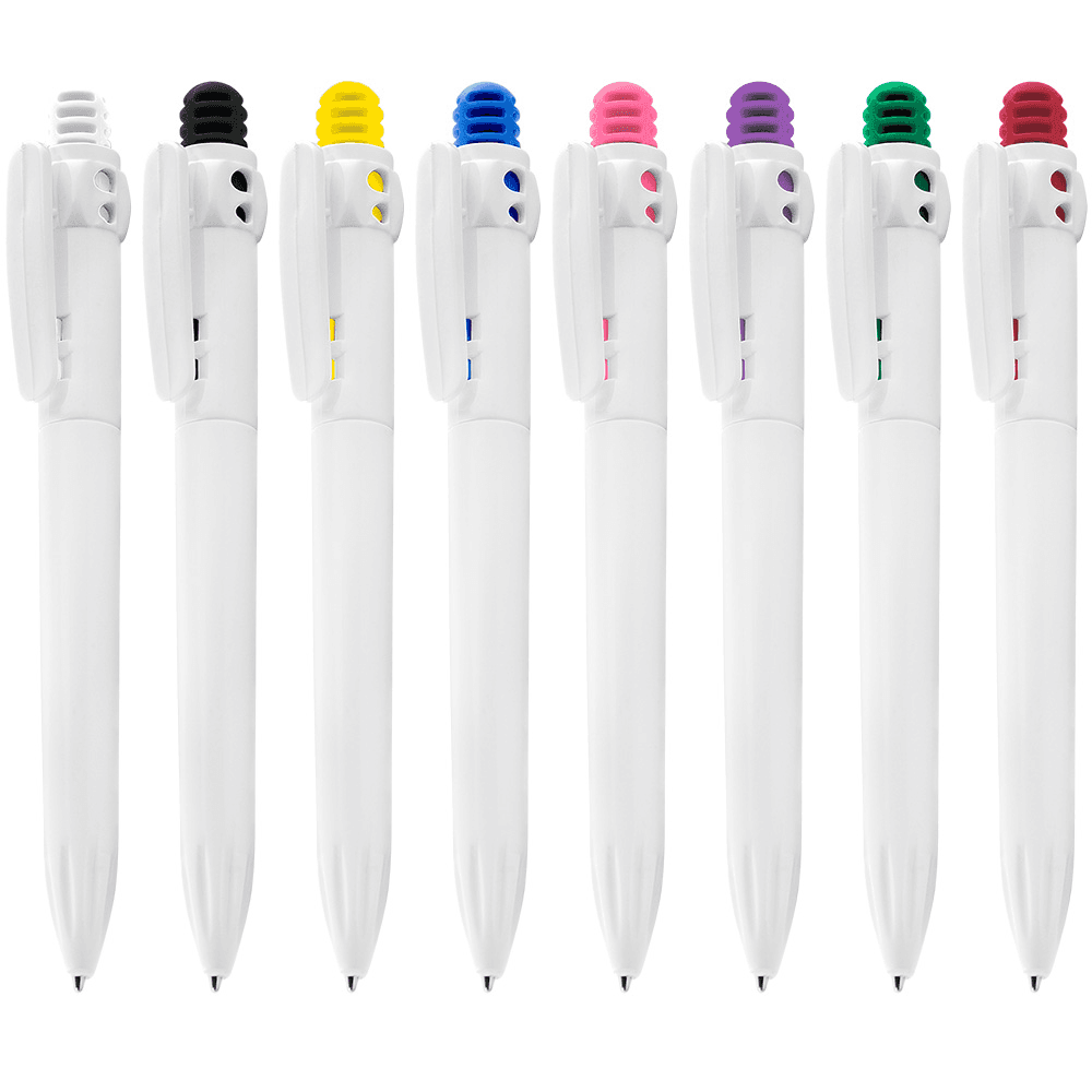 Caneta plástica esferográfica retrátil com grip, escrita azul e disponível em diversas cores. Confortável, funcional e ideal para ações promocionais.