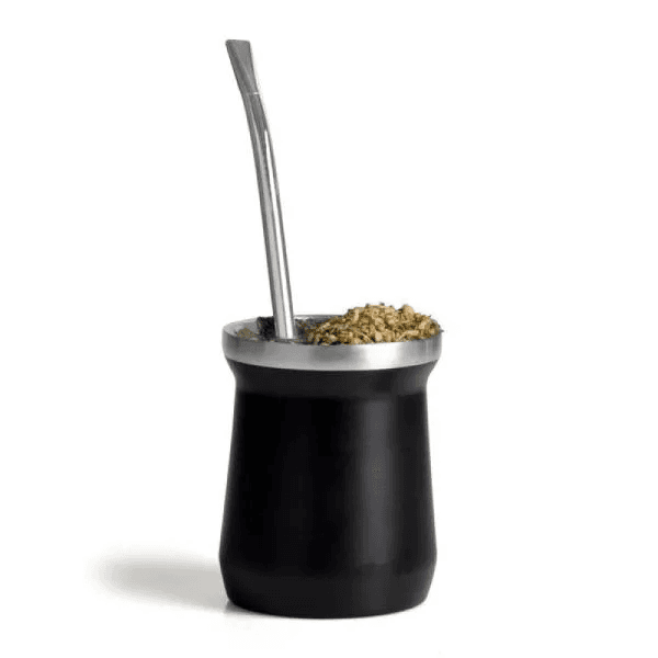 Cuia térmica em Aço Inox com bomba. Cuia confeccionada com dupla parede de inox, isolada a vácuo. Ideal para chimarrão ou tereré.