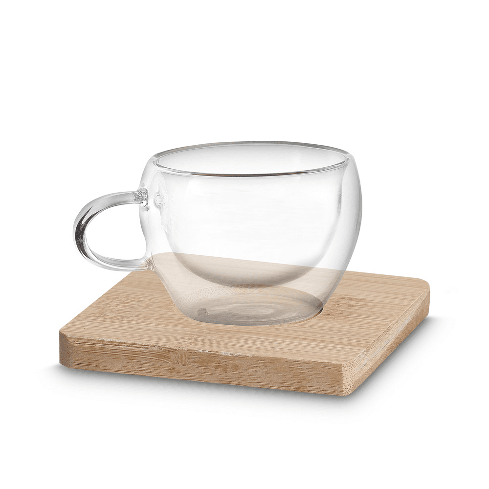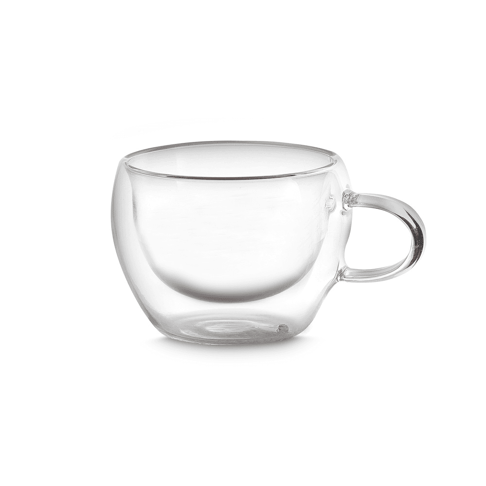 Conjunto com 2 xícaras de vidro borossilicato com parede dupla e capacidade de até 60ml.