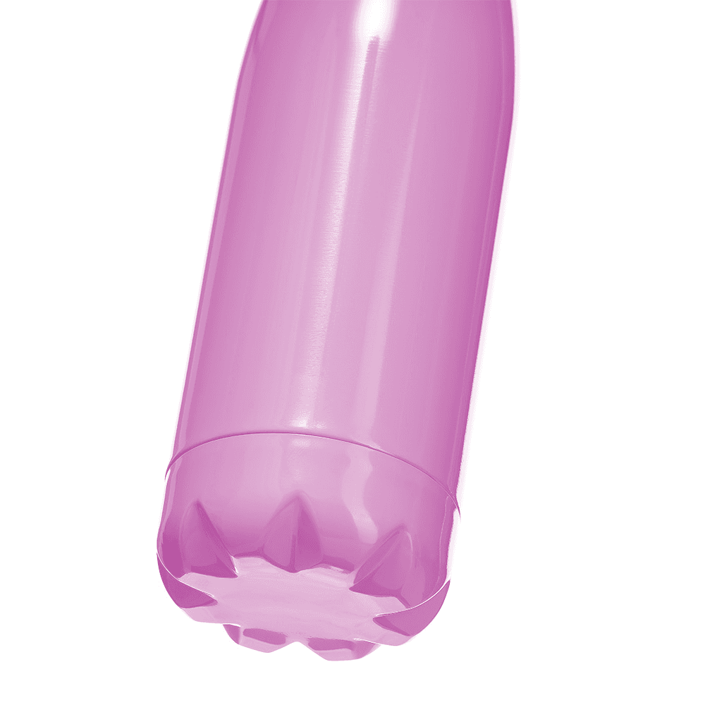 Garrafa em aço inox com capacidade de até 750 ml. Tampa rosqueável e anel de silicone para vedação. Design com frisos na tampa.