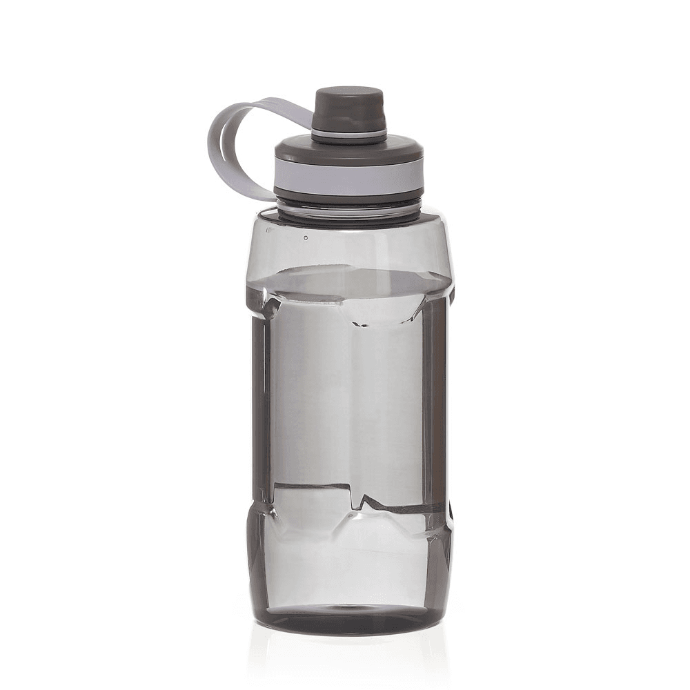 Garrafa plástica com capacidade 1.500ml. Alça de mão plástica, tampa rosqueável com anel de silicone para vedação e bico rosqueável para acesso rapido.