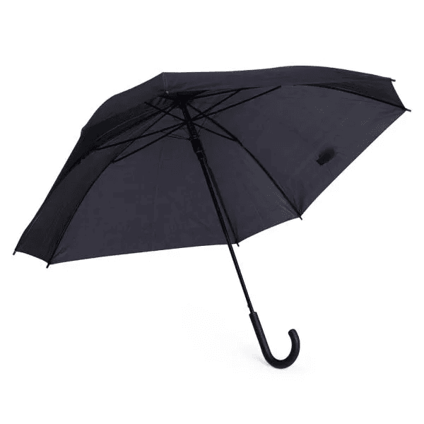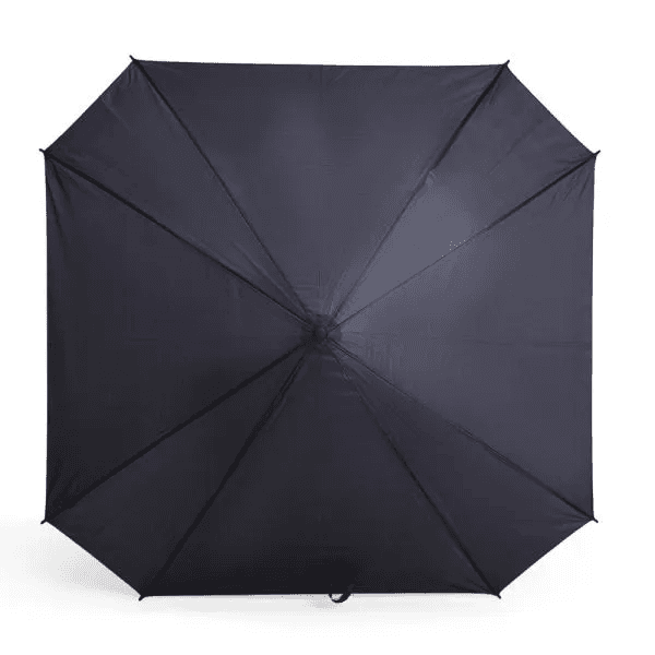 Guarda-chuva preto com formato quadrado.