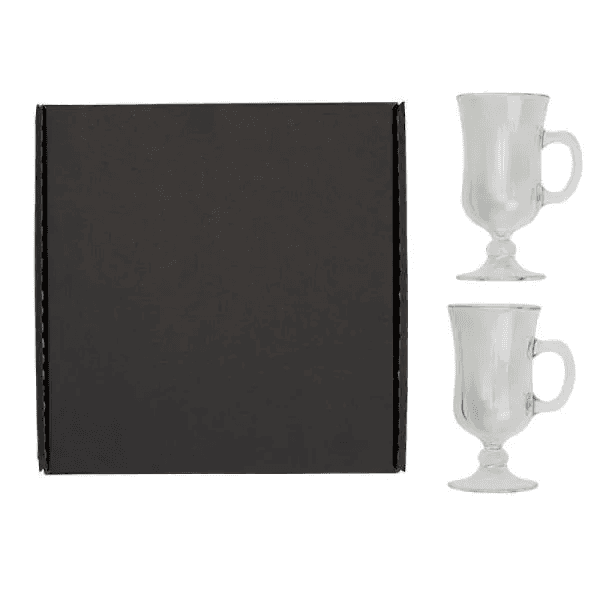 Jogo com 2 canecas de vidro para café. Capacidade: 240ml cada