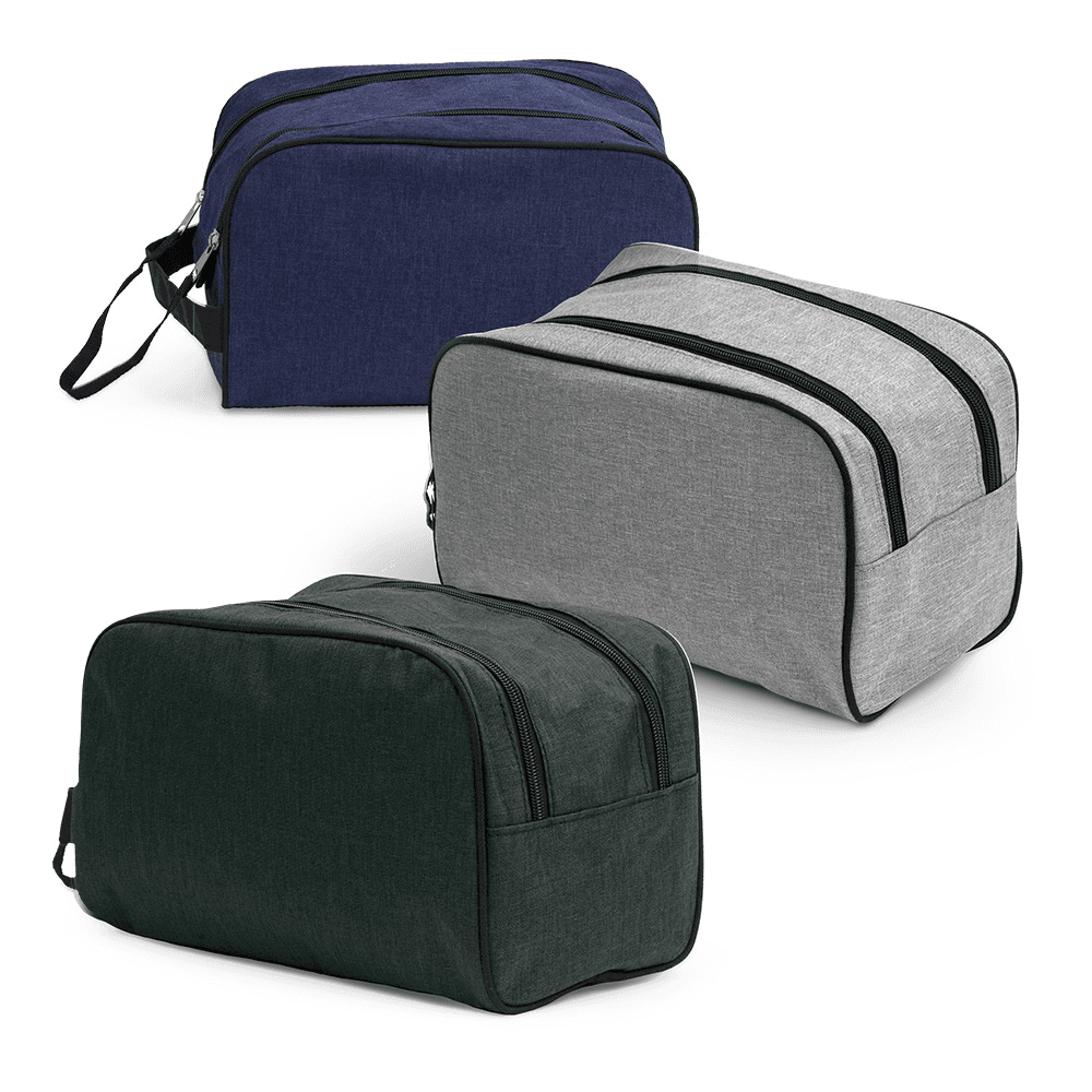 Nécessarie tecido polyester 600D, cursor duplo para fechamento com alça, trava com velcro, alça de mão, gravação Frontal.