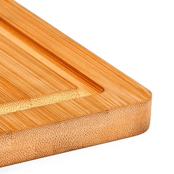 Tábua retangular para queijo em Bambu com sulco ao redor da tábua.