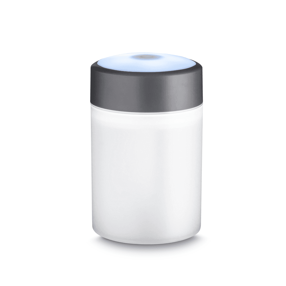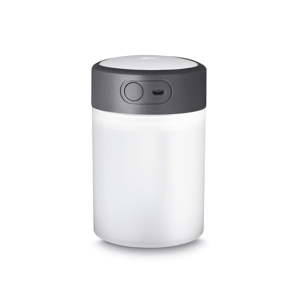 Umidificador de ar com difusor de óleo essencial à base de água via USB. Feito com ABS reciclável+ PP, com capacidade de 300ml. Na parte da tampa sua luz pode ser acesa tendo a possibilidade de cor LED OU RGB, ideal para uso em escritório ou em casa.