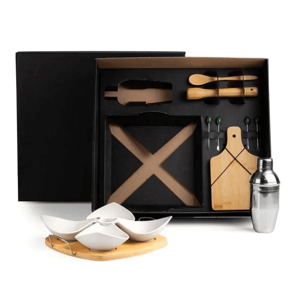 Conj. P/ Caipirinha C/ Petisqueira, Coqueteleira, Tábua E Utensílios - 14 Peças KT-9033C