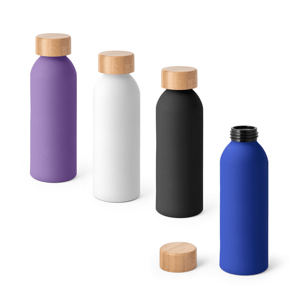 94250 QUETA. Squeeze em alumínio com acabamento mate e tampa em bambu 550 mL