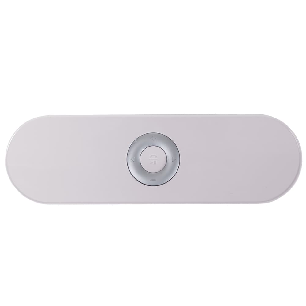 Caixa de Som Multimídia. Design fino e material plástico resistente, possui: botão On/Off no verso, botão >|| (MODE), botão < retroceder faixa ou diminuir volume, botão > avançar faixa ou aumentar volume, botão PLAY/PAUSE e atender chamadas, entrada P2/auxiliar(caixinha de som pode ser conectada no computador, basta segurar o botão central para alternar o modo), entrada microUSB, microfone, entrada microSD(cartão de memória) e entrada USB(leitura de pen drive), parte inferior possui borrachas anti deslizantes e auto-falantes laterais. Acompanha cabo USB.