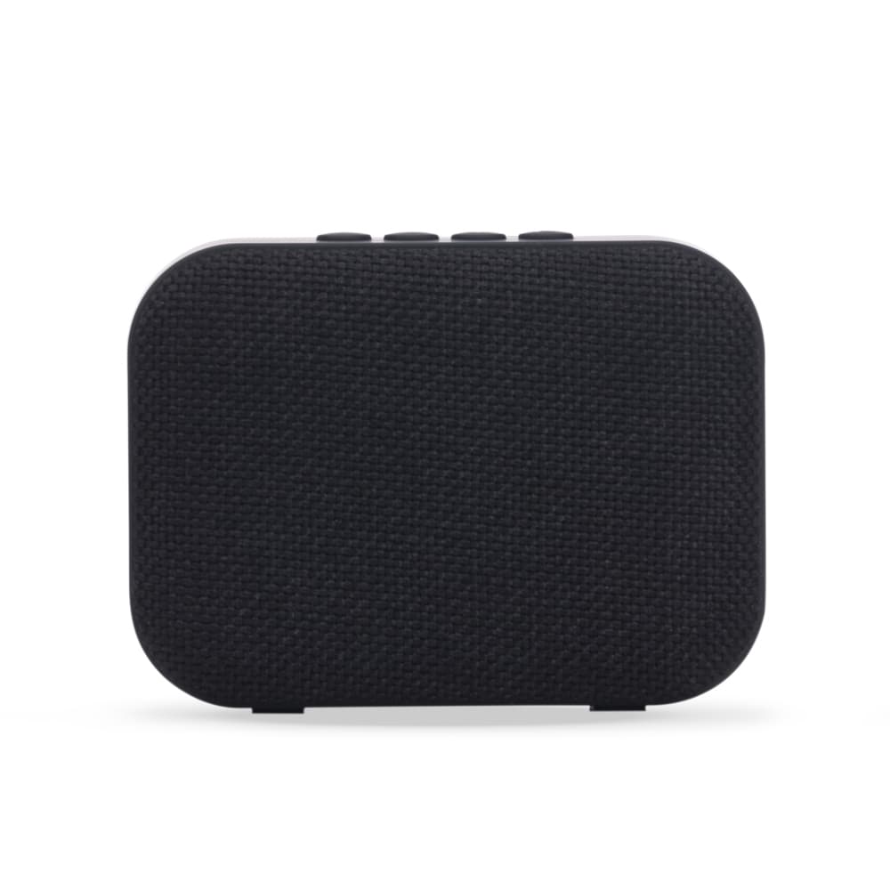 Caixa de Som Multimídia. Produzida em material emborrachado, tela de proteção do auto-falante em tecido, parte inferior com borrachas anti-deslizantes. Possui os botões de Play/Pause; Aumentar e diminuir volume/avançar e retroceder faixas; Modo; Entrada USB; Entrada TF (cartão MicroSD); Botão On/Off e Entrada DC 5V. Acompanha cabo USB.