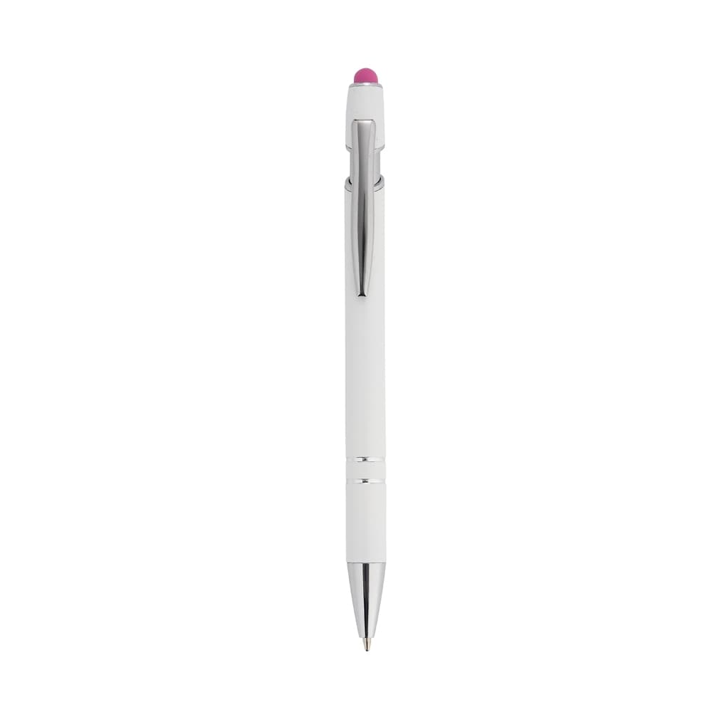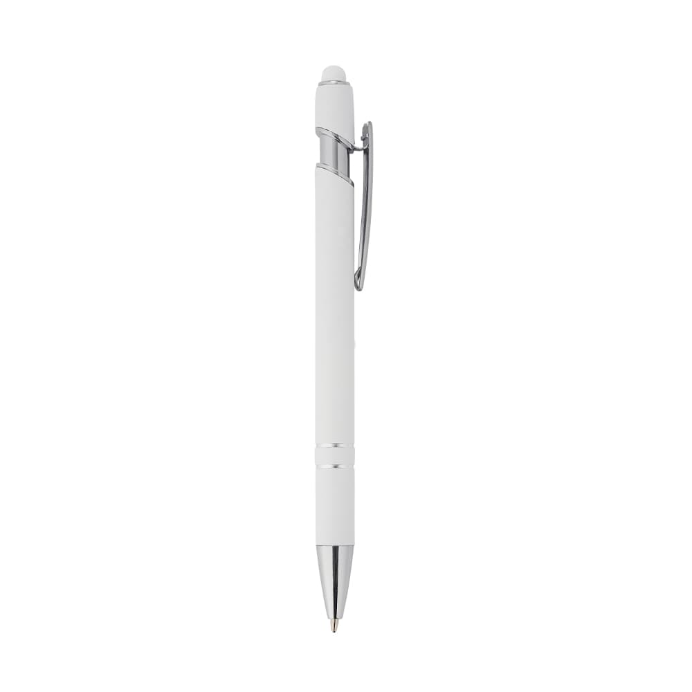 Caneta metálica touchscreen com acionamento por clique, carga esferográfica azul 1.0mm.