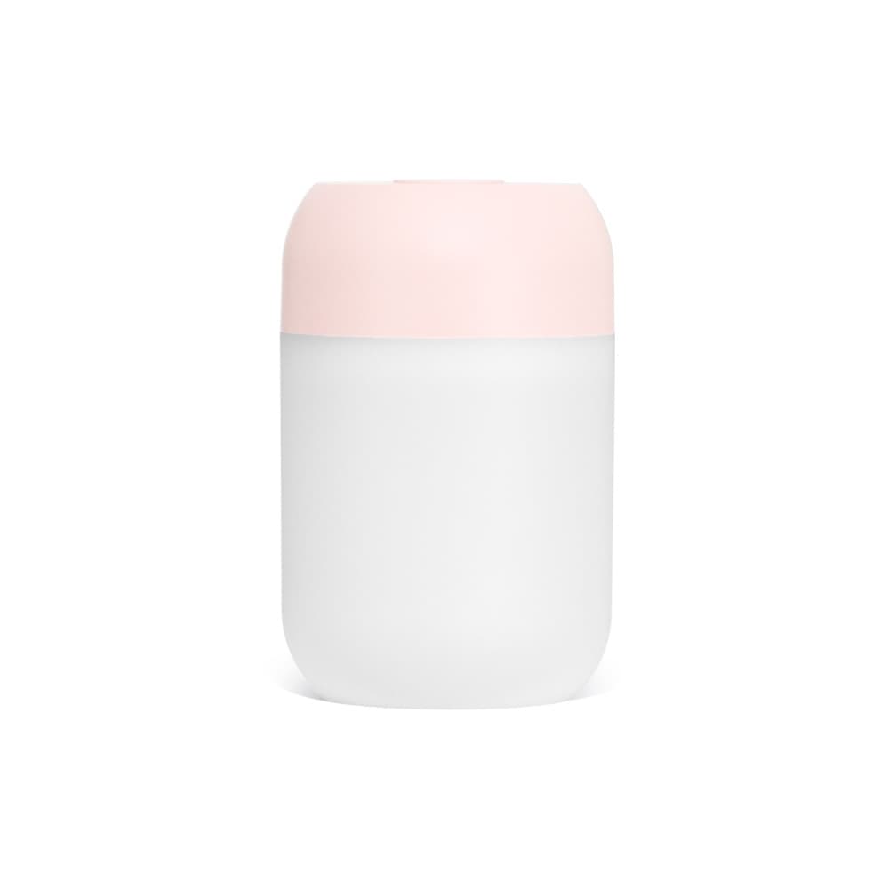 Umidificador de ar com LED, feito em plástico com reservatório de água com capacidade de 350ml. Possui dois níveis de névoa, sendo contínua e com oscilação. Acompanha filtro de algodão e cabo USB V8.