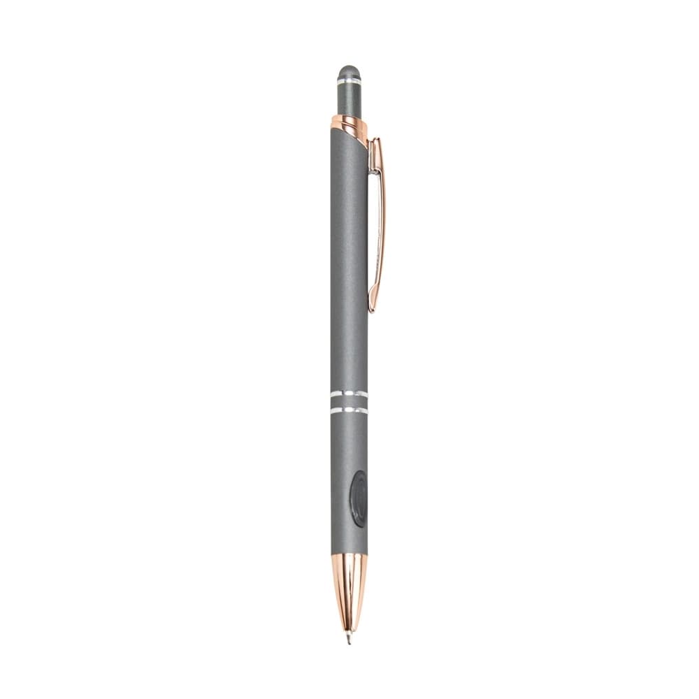 A elegância e o conforto combinados em uma única caneta esferográfica para garantir uma escrita mais agradável através da sua construção metálica e seu par de grips em borracha, além de ponta e clipe em plástico. Sua carga azul de 1.0 mm possui acionamento por clique com ponteira emborrachada que que permite seu uso como uma caneta touch para interação com smartphones, tablets e demais dispositivos de telas touchscreen.