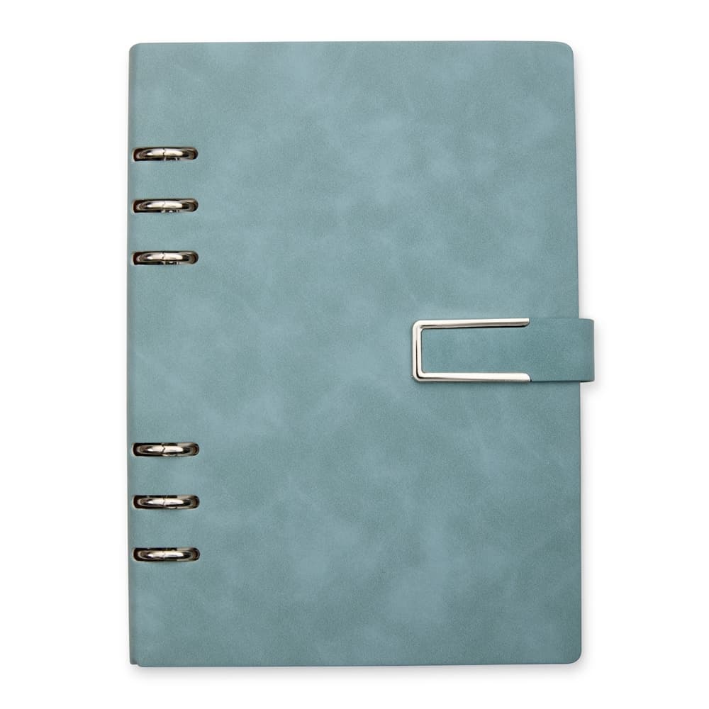 Organize todas as anotações de forma prática com o nosso caderno fichário em PU. Com um design super elegante, ele tem capa dura no formato A5 e um fechamento de fivela imantado que protege as 119 folhas em papel marfim. Os seis anéis permitem retirar e reorganizar as folhas sempre que precisarem, deixando tudo do seu jeito. E para completar, a primeira folha traz um espaço especial para dados pessoais. Esse caderno fichário é a escolha perfeita para manter tudo organizado e com muita sofisticação.