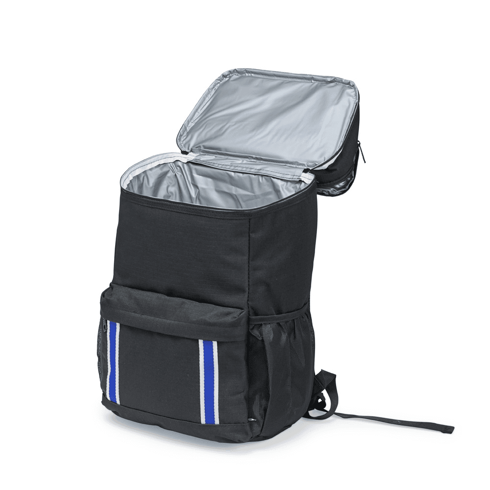 Alimentos e bebidas frescos e conservados por mais tempo com a nossa mochila térmica. Possui capacidade total para até 24 litros, tornando-a uma opção versátil para todas as ocasiões, desde eventos ao ar livre até atividades mais cotidianas. Feita em poliéster impermeável com revestimento interno em PEVA atóxico, que possui propriedades contra vazamentos, ela garante proteção completa para um aproveitamento pleno de suas capacidades sem quaisquer tipo de preocupações. A mochila térmica ainda traz um bolso superior na parte externa que também apresenta revestimento em PEVA atóxico, com capacidade de aproximadamente 1,5 litros, ideal para carregar objetos menores como potes plástico com frios, por exemplo. Além disso, ela conta também com um bolso frontal que pode ser usado para carregar itens como talheres e guardanapos além de outros dois bolsos laterais em tela.