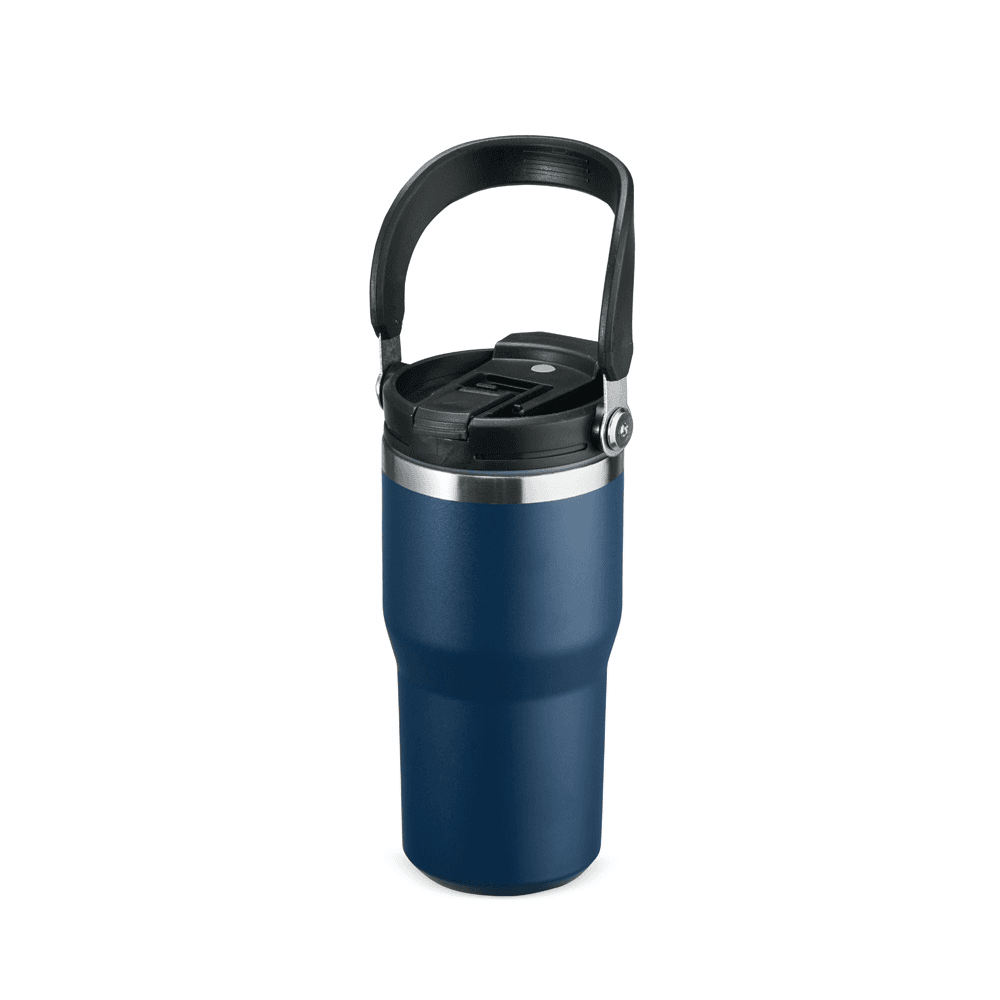 Copo térmico em inox com pintura eletrostática e capacidade máxima de 600ml. Conta com estrutura de parede dupla e vedação a vácuo que permite a conservação da temperatura de líquidos por mais tempo. Possui tampa plástica rosqueável com protetor para o bocal, bico flip, canudo interno removível e alça fixa para transporte.