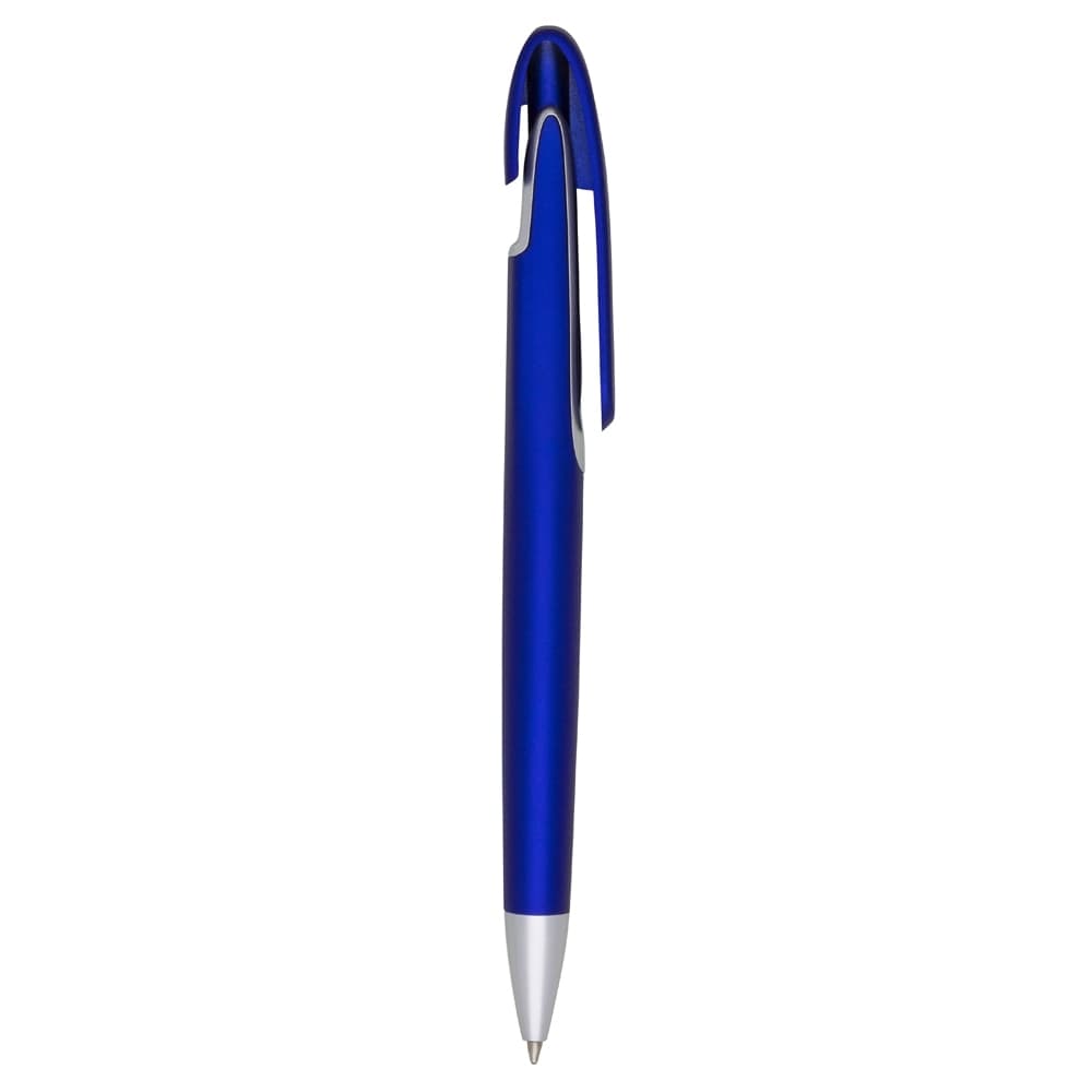 Caneta plástica com carga esferográfica azul 1.0 mm e acionamento por clique.