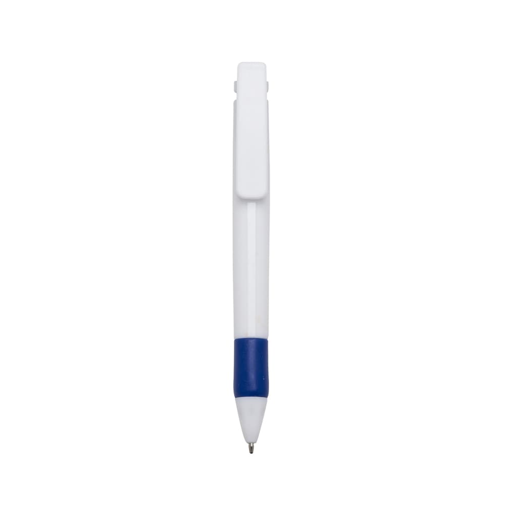 Caneta plástica com carga esferográfica azul 1.0 mm e acionamento por clique.