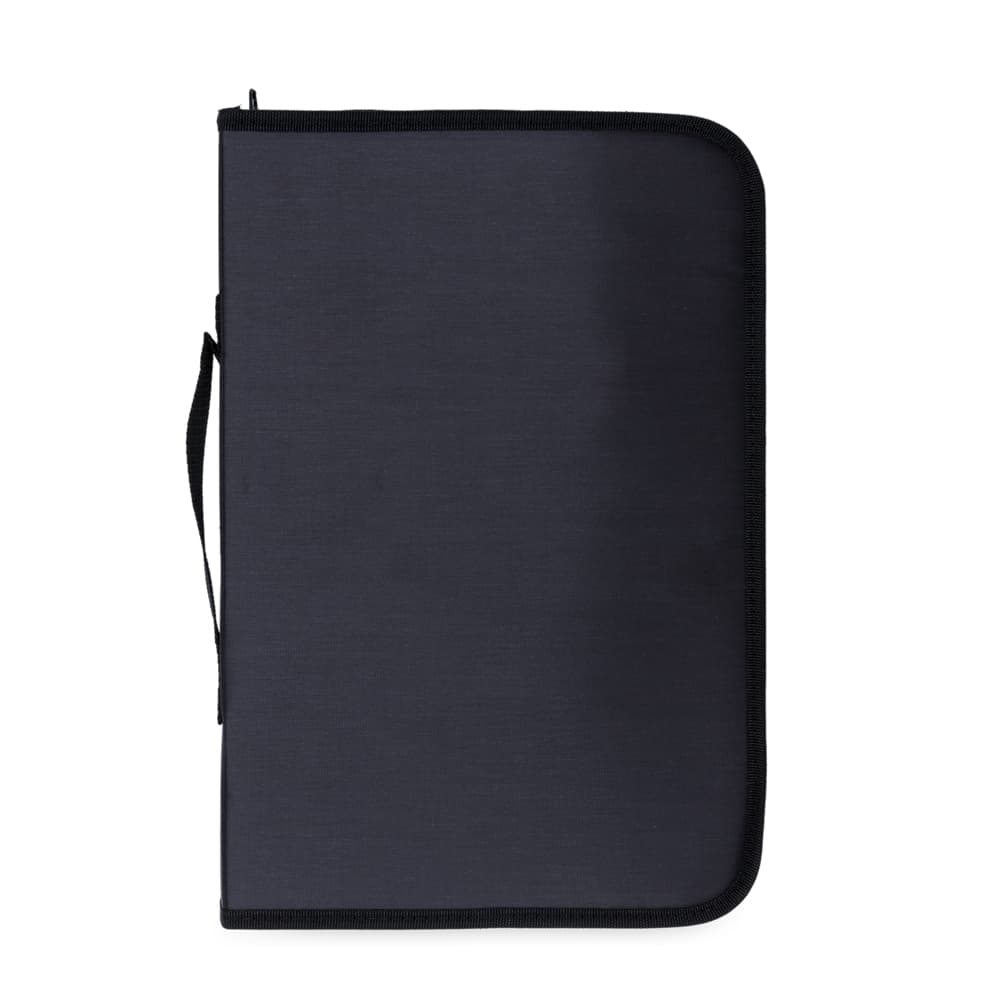 Kit churrasco 3 peças em estojo de nylon com alça. Possui tábua de madeira com canaleta, garfo e faca. Acompanha proteções plásticas e parte interna com elástico para fixar as peças.