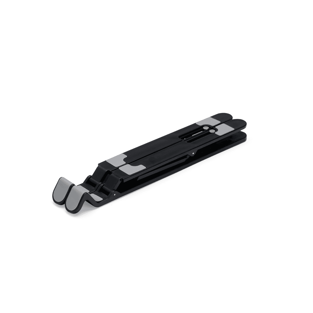 Um suporte para notebook retrátil que combina com qualquer ambiente. Feito em plástico resistente, o suporte conta com até sete posições de ajustes para oferecer mais opções para apoiar notebooks de até 15,6 polegadas, tudo isso sem abrir mão da ergonomia e elegância, essenciais para um bom desempenho ou apresentação das mais variadas atividades. Ele também conta com tiras laterais em silicone para ajudar a manter o aparelho mais firme e, além disso, o formato do suporte contém um design aberto para facilitar a dissipação de calor do eletrônico sobre ele.