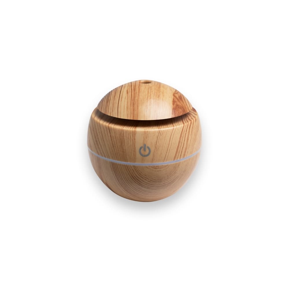 Mini umidificador ultrassônico com led que muda de cor. Acompanha filtro de algodão e um cabo USB. Capacidade para 130ml de água. Produzido em plástico e revestido por adesivo caracterizando madeira. Taxa de tensão DC5V e Taxa de consumo de 2W. O produto não retém energia, funciona somente com o cabo USB conectado a um meio de alimentação de energia. Obs.: para conservação do produto é recomendável utilizar água filtrada e não deve ser usado essências!