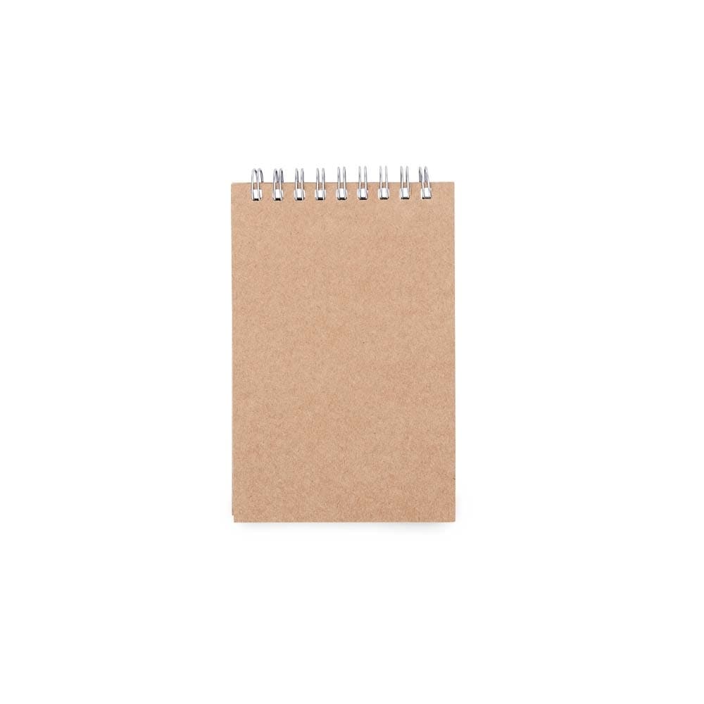 Bloco de anotações ecológico com wire-o. Contém aproximadamente 80 páginas pautadas na cor branca.