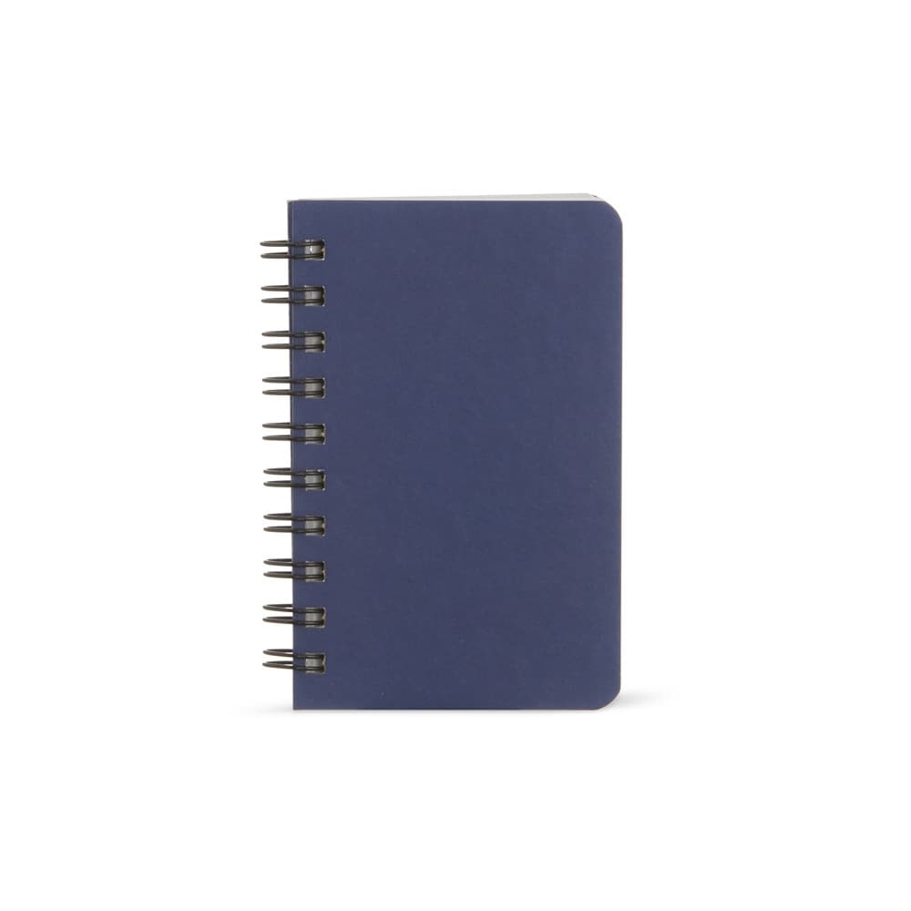 Caderno capa dura em kraft com wire-o. Contém aproximadamente 100 folhas brancas sem pauta.
