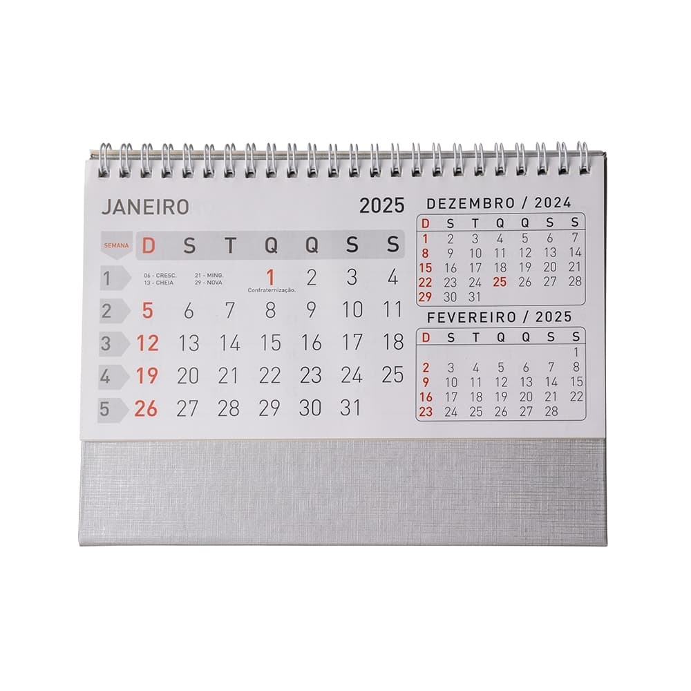 Calendário de mesa 2025 em papel couche 115g, base em percalux.