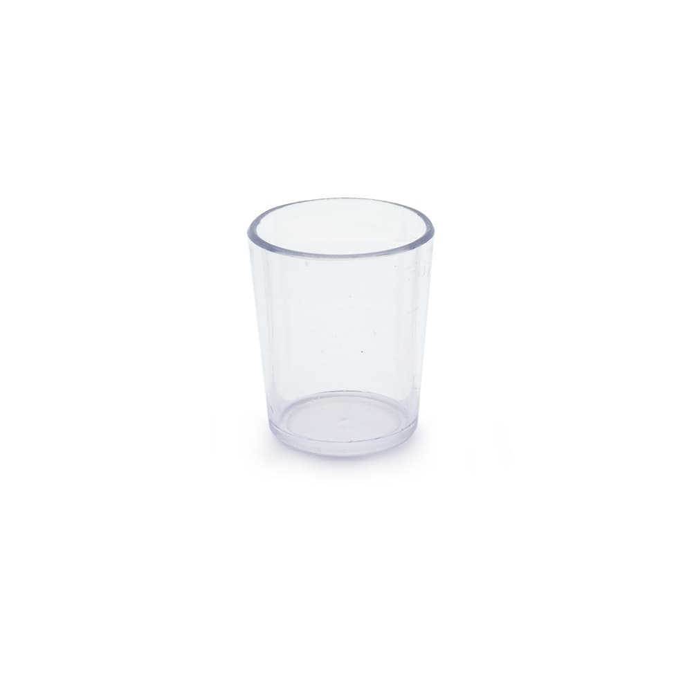 Coqueteleira de acrílico com capacidade de 560ml, possui tampa de encaixe com peneira e um copo pequeno utilizado como tampa.