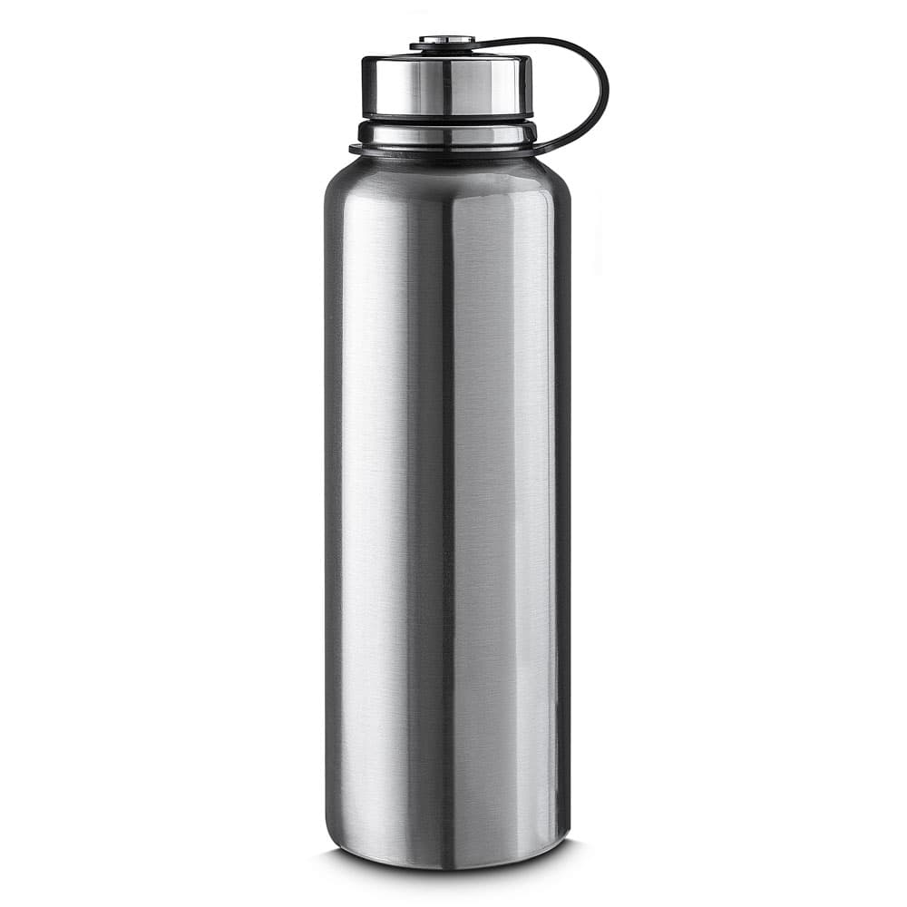 Garrafa térmica com infusor de bebidas, feita em inox 304 com capacidade de 1 litro. Contém base antiderrapante e alça de silicone acoplada na tampa.