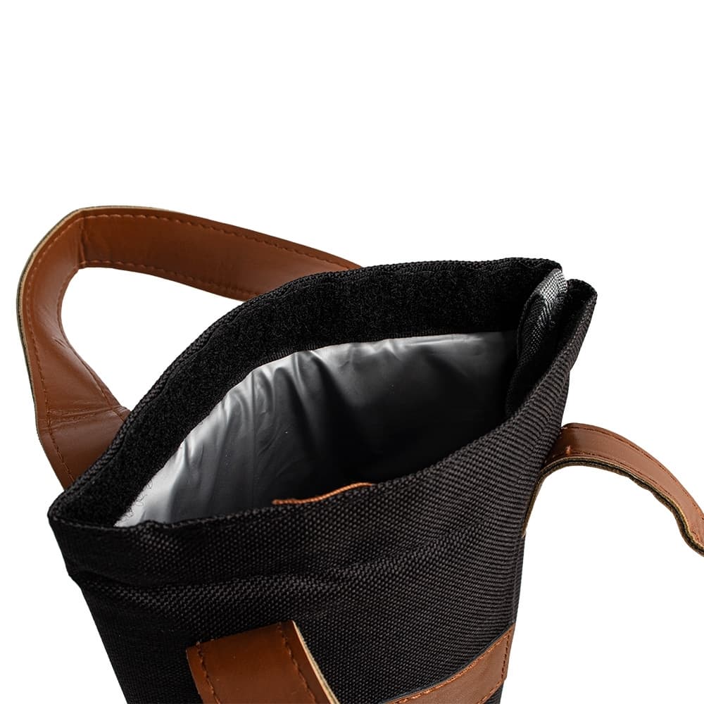 Bebida gelada ou quente a qualquer hora, onde estiver. Nosso Porta Garrafa Térmico é ideal para quem ama vinhos e bebidas frescas. Feito em nylon com revestimento térmico em PEVA atóxico, conta com fechamento em velcro para abrir e fechar com praticidade, além de detalhes em couro sintético na alça e no espaço de personalização. Perfeito para acompanhar em todos os momentos, tornando cada brinde ainda mais especial.