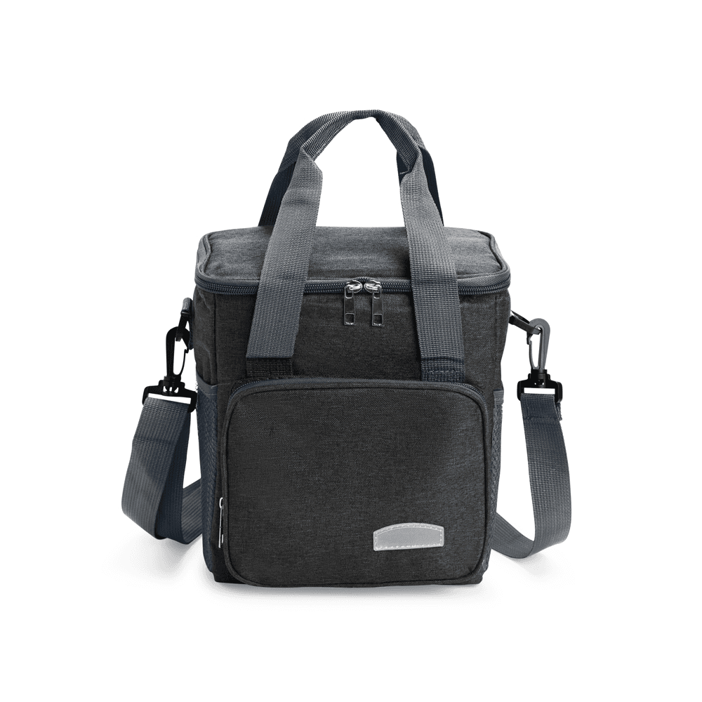 Bolsa térmica em Oxford resistente à água, com capacidade de até 11 litros e fechamento em zíper. Possui revestimento térmico em folha de alumínio na tampa e em PEVA no restante do interior, contribuindo para conservar a temperatura de alimentos e bebidas por mais tempo. Apresenta bolso frontal externo com zíper e dois bolsos laterais em tela de nylon com elástico. Dispõe ainda de duas alças laterais fixas e uma alça transversal removível.