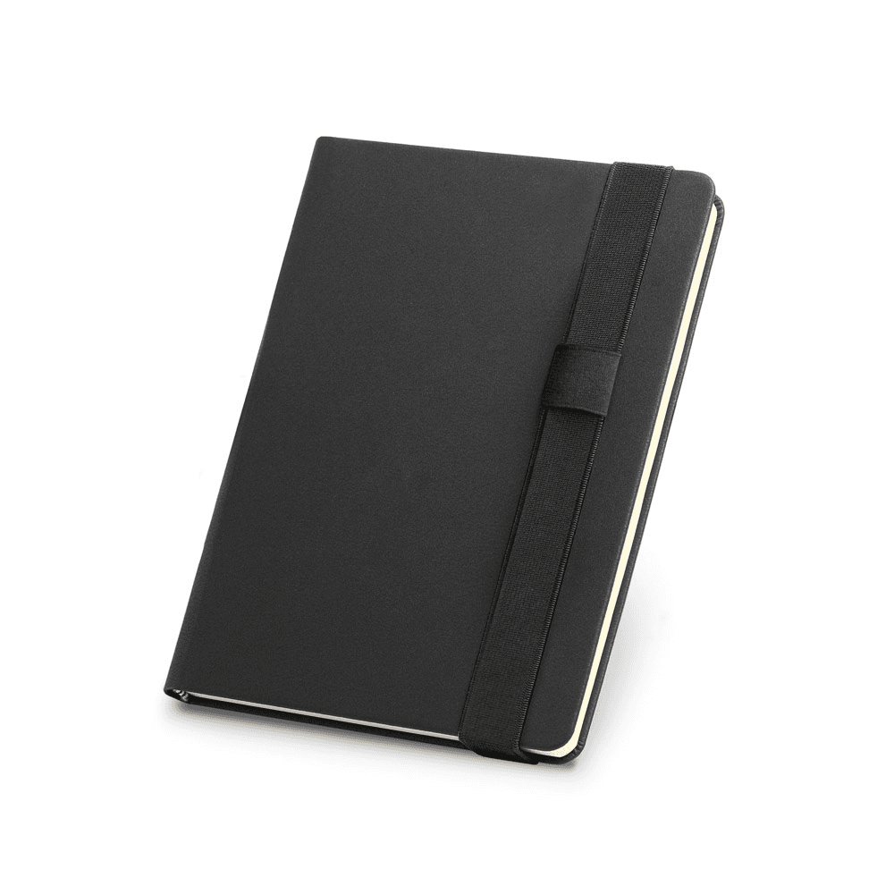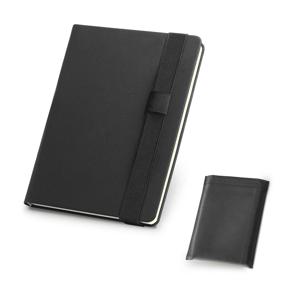 Caderno A5 de capa dura em c. sintético. Contém 280 páginas lisas em cor marfim. Fornecido em bolsa de non-woven. 145 x 210 mm | Bolsa: 185 x 240 mm