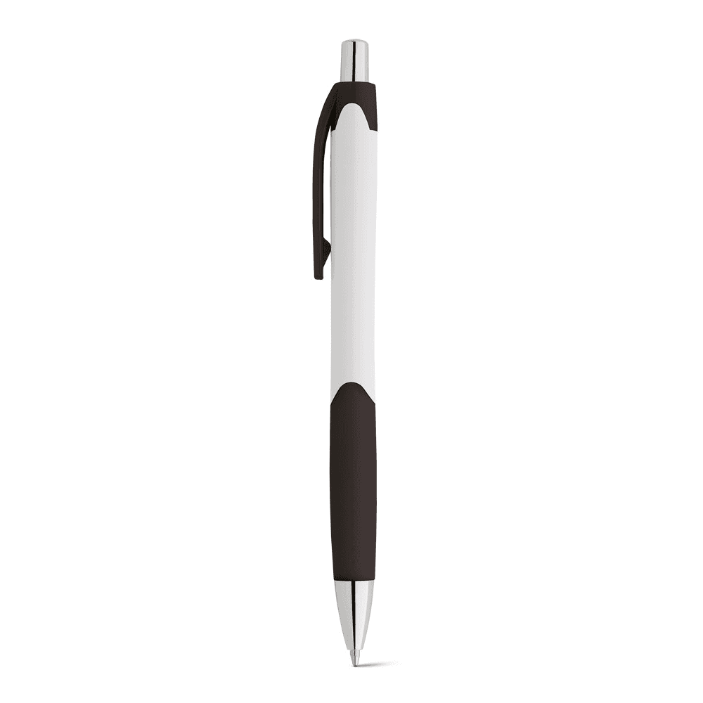 81104 CARIBE WHITE. Esferográfica em ABS com grip e acabamento brilhante - Brindes Caxias