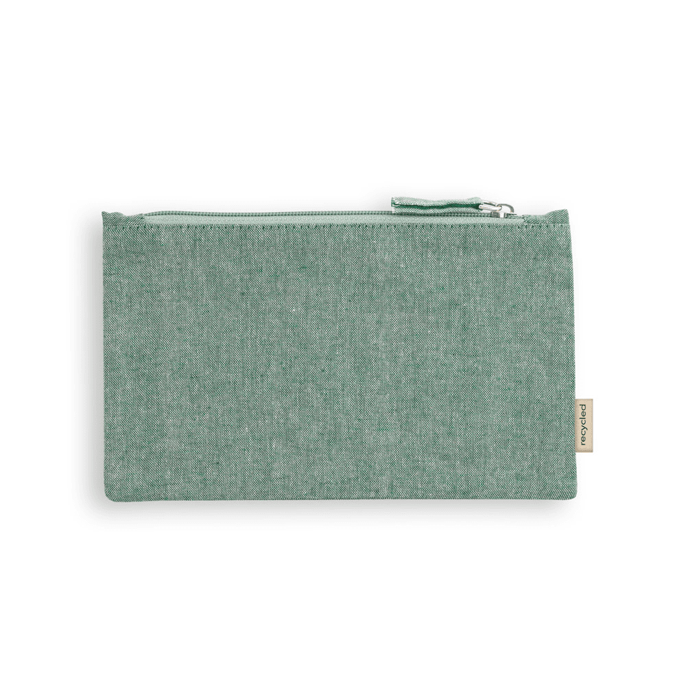 Bolsa multifunções em 70% algodão reciclado e 30% poliéster reciclado (140 g/m²). Interior com forro 100% algodão. 225 x 120 mm