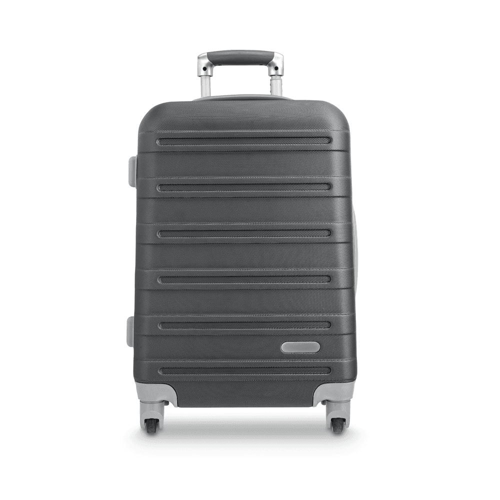 Mala de viagem executivo em ABS com interior forrado e divisória. Fecho de segurança com senha na lateral, 4 rodas giratórias, pega extensível em alumínio com mola (altura da pega estendida até 435 mm) e placa metálica removível para fácil gravação. Capacidade até 36 L e peso de 2,80 kg. 370 x 570 x 220 mm | Placa: 60 x 15 mm